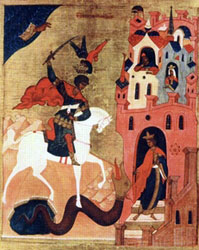 Юрьев день (Егорьев день) Егорьев день (Юрьев день) — 23 апреля — заменяет занесенное к нам из-за чужеземного рубежа первомайское празднование встречи весны-красавицы. «Пришел Егорий — и весне не уйти!», «Не бывать весне на Святой Руси без Егорья!», «Чего-чего боится зима, а теплого Егорья — больше всего!» — можно услышать во многих уголках русского простора. Святой великомученик Георгий, живший в конце III века по Р. Х., считается покровителем стад и земледелия. Само греческое слово георгос, георгиос означает земледельца. Святой Георгий обыкновенно представляется на белом коне, поражающий копьем дракона. Ему приписывают спасение девицы от дракона в ливийских степях. Девушка была принесена в жертву, но Георгий поразил дракона копьем, когда тот уже разинул пасть и собирался проглотить ее. Дракон имеет таинственное значение: под ним подразумевают сокрушение языческого служения, на развалинах коего возродилась христианская церковь. Георгий Победоносец в большом почете у русских земледельцев. В России он украшает еще государственный герб и в его честь есть один из важнейших военных орденов; его изображение выбивают с государственным гербом на деньгах В Егорьев день домашние коровки, кони, овечки да козочки первый раз выходят на свежую травку после зимовки, хозяйки их вербной веточкой погоняют, пастухов угощают-одаривают, приговаривая: